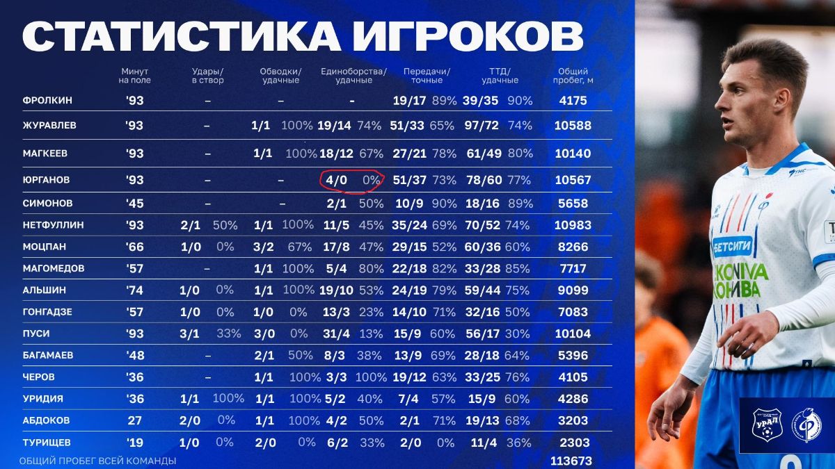По игре, ну вы сами всё видели. Пацанята, можно сказать лимита Урала, лучше “мегазвёзд и монстров пердива” Факела. Это… перспектива на будущее, они сыграются и будут в РПЛ шатать соперников