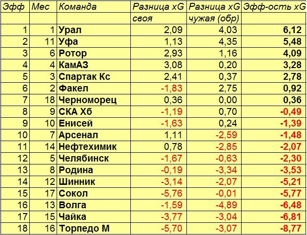 Табличка Владислава великолепна, но в ней не отражена эффективность команд по xG. Так что докину в тему дополнение к той таблице.
