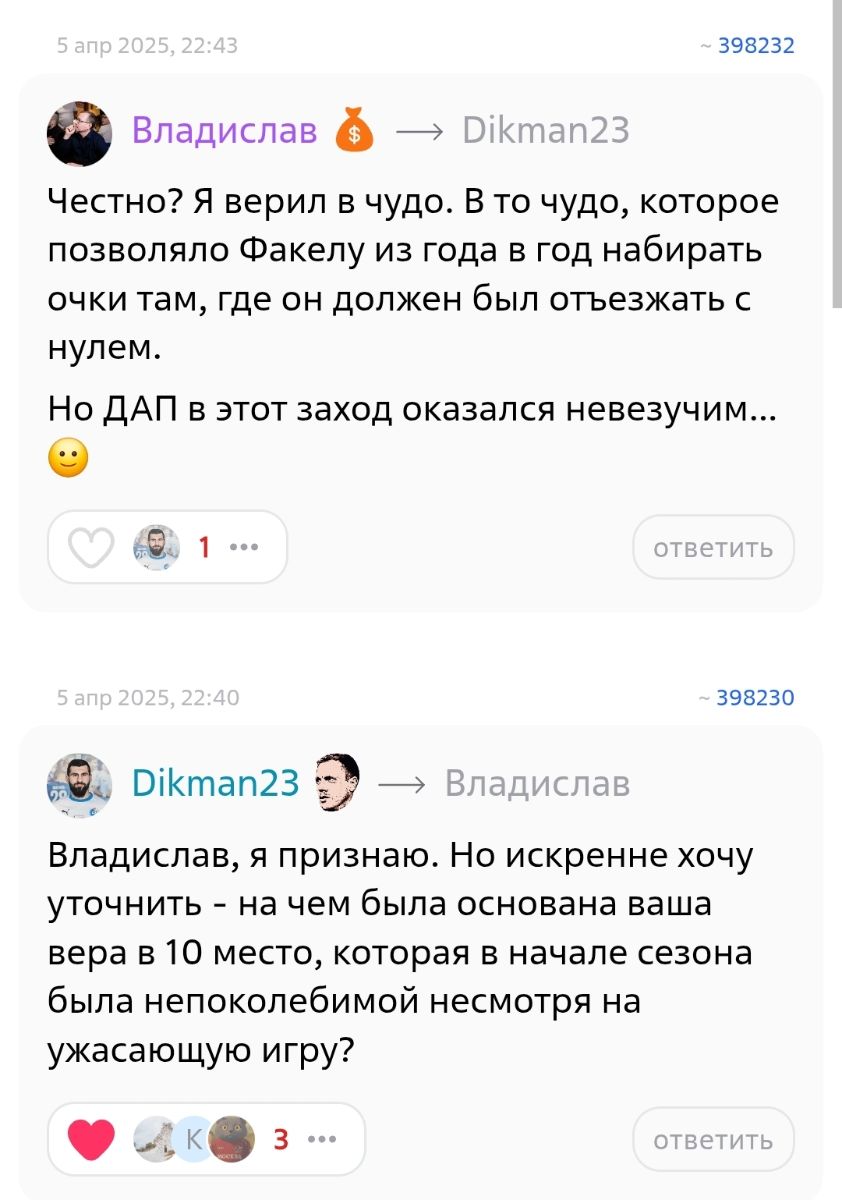 Что ж, приятное забытое ощущение. Недавно вроде сэр Сергей вспоминал про Рязань и Факел. Очень приятное ощущение. Ни в коем случае темпов не сбавлять! Все на стадион!