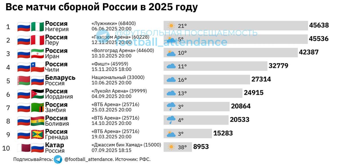 Вся посещамость профессионального футбола в России в уходящем году.