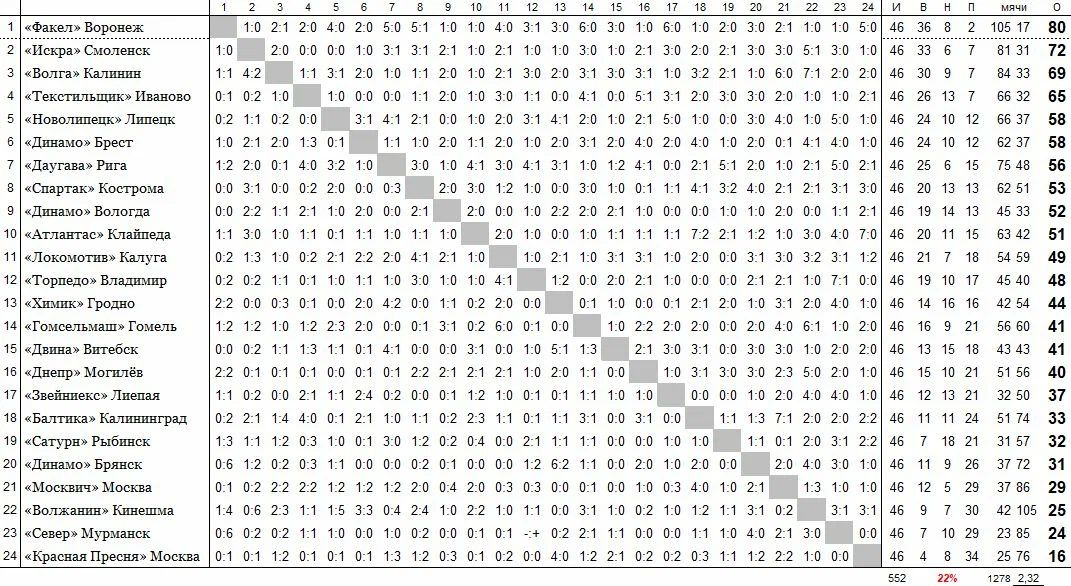 последние незакрытые гештальты на этот сезон: не можем выиграть чемпионат первой лиги 41 год!; не побеждали тухлых на выезде более 20 лет. Подождем до весны.