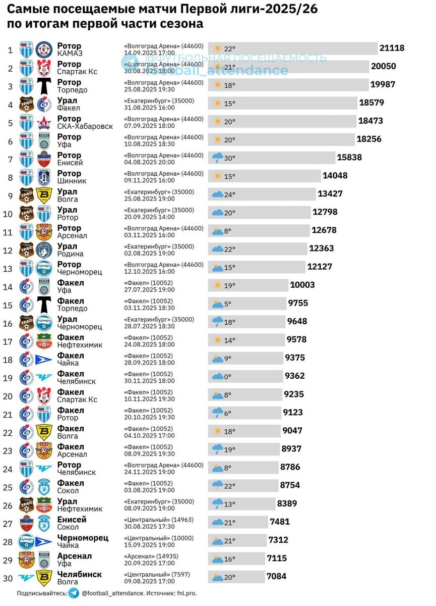 Понятно,что это открытие стадионов к ЧМ. Обидно, что ныне не существующие команды возглавляют список. И Факелу в ближайшие 50 лет эти рекорды не побить.