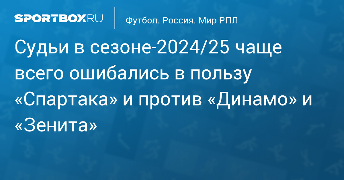 Судьи в сезоне‑2024/25 чаще всего ошибались в пользу «Спартака» и против «Динамо» и «Зенита»