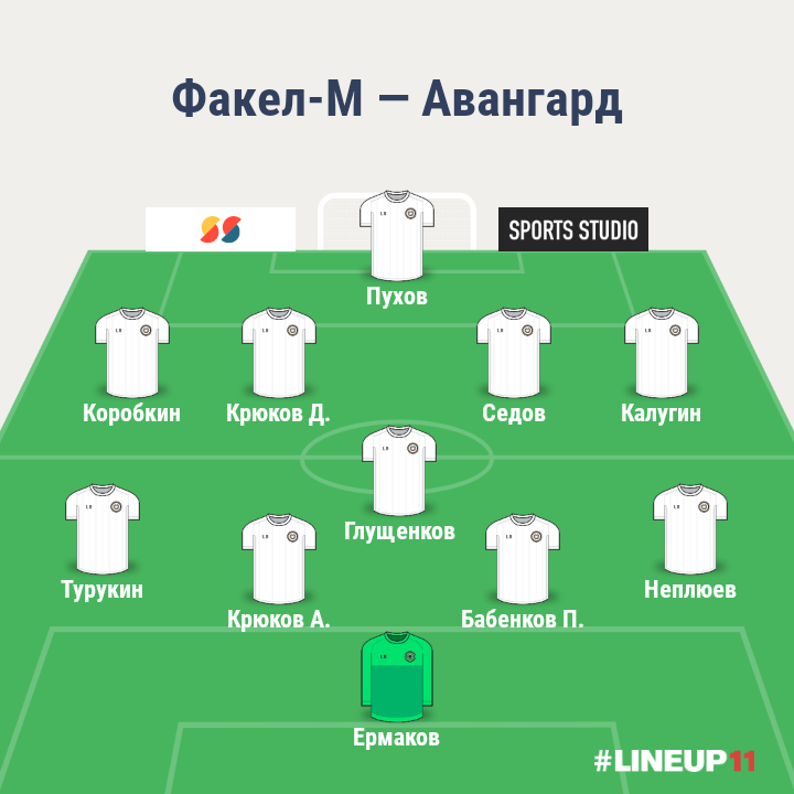 Из-за нехватки креативных игроков (Дмитриев, Коробов) предлагаю брать количеством, поэтому оставляем сзади трёх защитников. Глущенкова пробовали на этой позиции в контрольных матчах. По краям - латерали Никитин и Мастерной, у них есть опыт игры как в атаке, так и в обороне. В центре полузащиты чистый разрушитель Замалиев и созидатель Акбашев. Впереди на острие ловит врага на офсайдах голодный Разборов, в качестве инсайдов Мазуров и Петрусев.