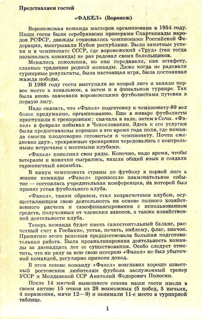 вот страница программы к матчу 1989 года СКА Ростов - Факел. (1 - 2)