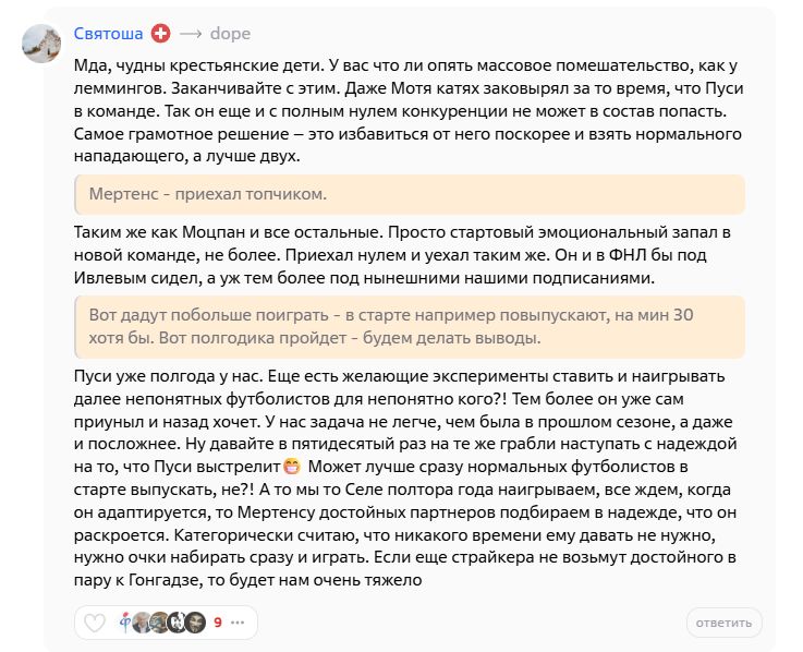 Кстати где сейчас твой любимый Максимов? Ленивый лавочник, который боится лишний раз на тренировке ножку потянуть. В ФНЛ один из пяти стопроцентных моментов забивал, условно такие моменты, как у Пуси был вчера в первом тайме. Правильно его и убрали “и нечего в команде делать человеку, на которого нельзя положиться не только в игроцком, но и в моральном плане”. Время расставило всё по местам, Максимов никому не нужен и сейчас без клуба, проебал предсезонку лентяй и якобы ищет более выгодное предложение под тренера своего любимого. Прошлый сезон максика 29 матчей и 5 мячей.