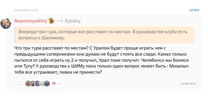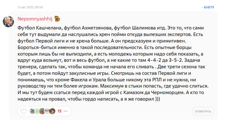 Кто-то конечно разбирается, кто-то Шалимову пивка налить хочет уже с самого начала сезона, кто-то уже на предсезонке всё понял. Там же так всё выглядело мощно и фундаментально на этой предсезонке!