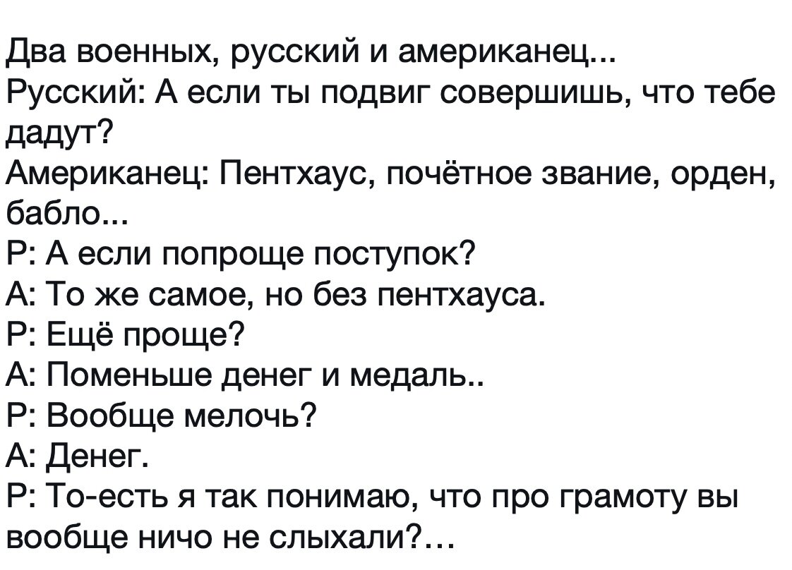 Это вы телевизор ретранслируете? Есть ещё красивая фраза! "Идите в суд!". Я другой такой страны не знаю, где так вольно дышит человек. Проходили. И к этому возвращаемся. Только раньше, кроме того что трава была зеленей и девки сисясьтей были, государство ещё пыталось изображать закон и справедливость, а сейчас этим не заморачиваются. Заговорился я с вами, пойду телевизор посмотрю.