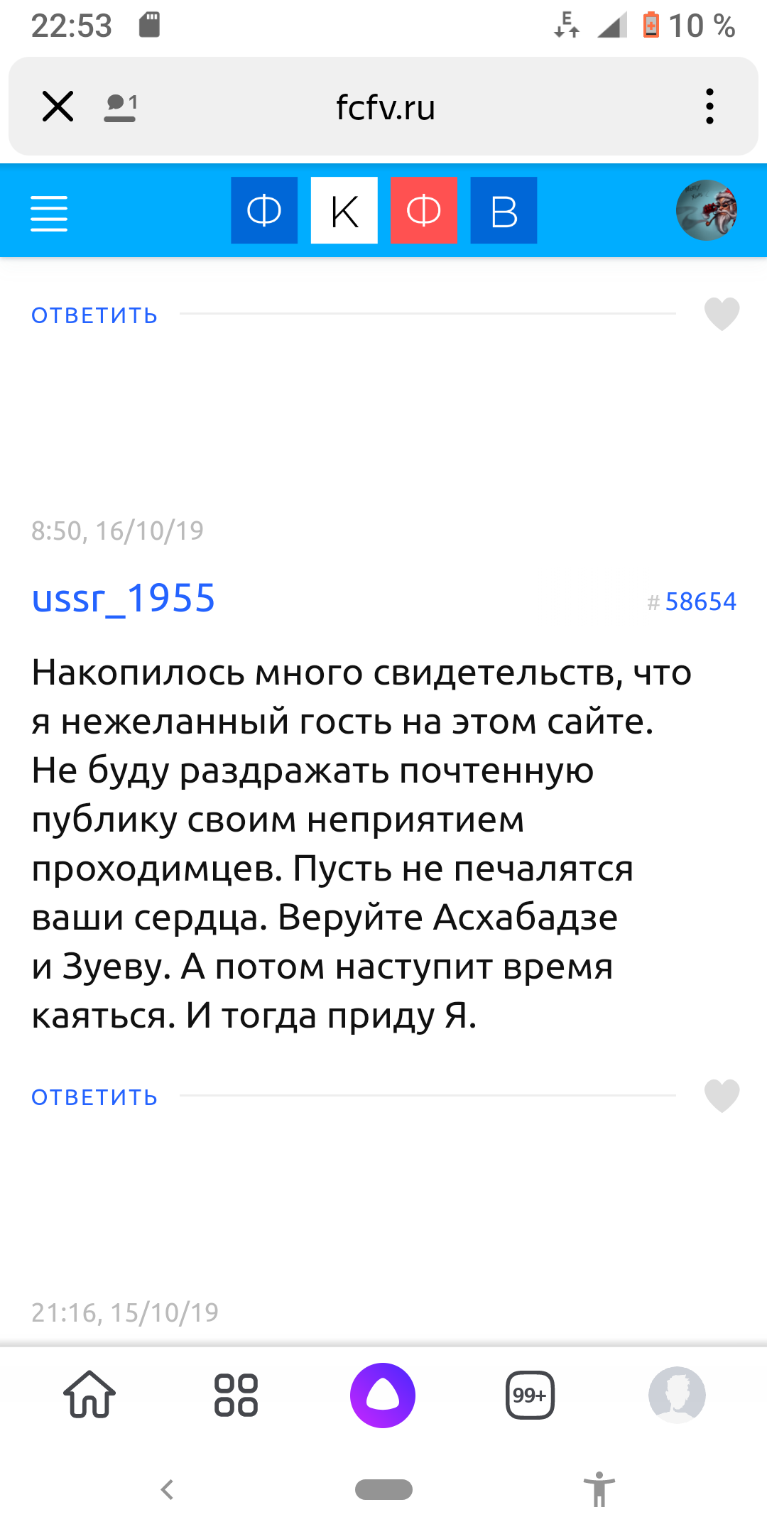 Не было никакого желания вас задевать , смысла в этом не вижу , какой в вас интерес . Вы сами себя своими .. постами .. высекли и доказали правильность моей мысли. Очень жалко вас , возможно даже надо вам обратиться к специалистам , хотя видимо , уже поздно , да и не к чему. Пишите дальше , буду с удовольствием вас читать , особенно ваши аналитические отчёты о матчах , это шедеврально.