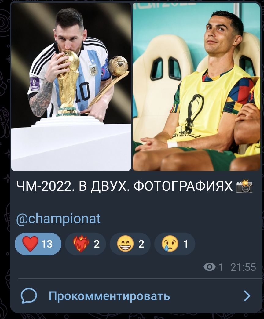 Вот так вот жизнь и расставляет всё по местам. Кто-то чемпион мира, а кто-то Люся. Наконец-то решился вопрос последних двух десятков лет “Роналду или Месси”. Это МЕССИ! Заслужил, трудяга