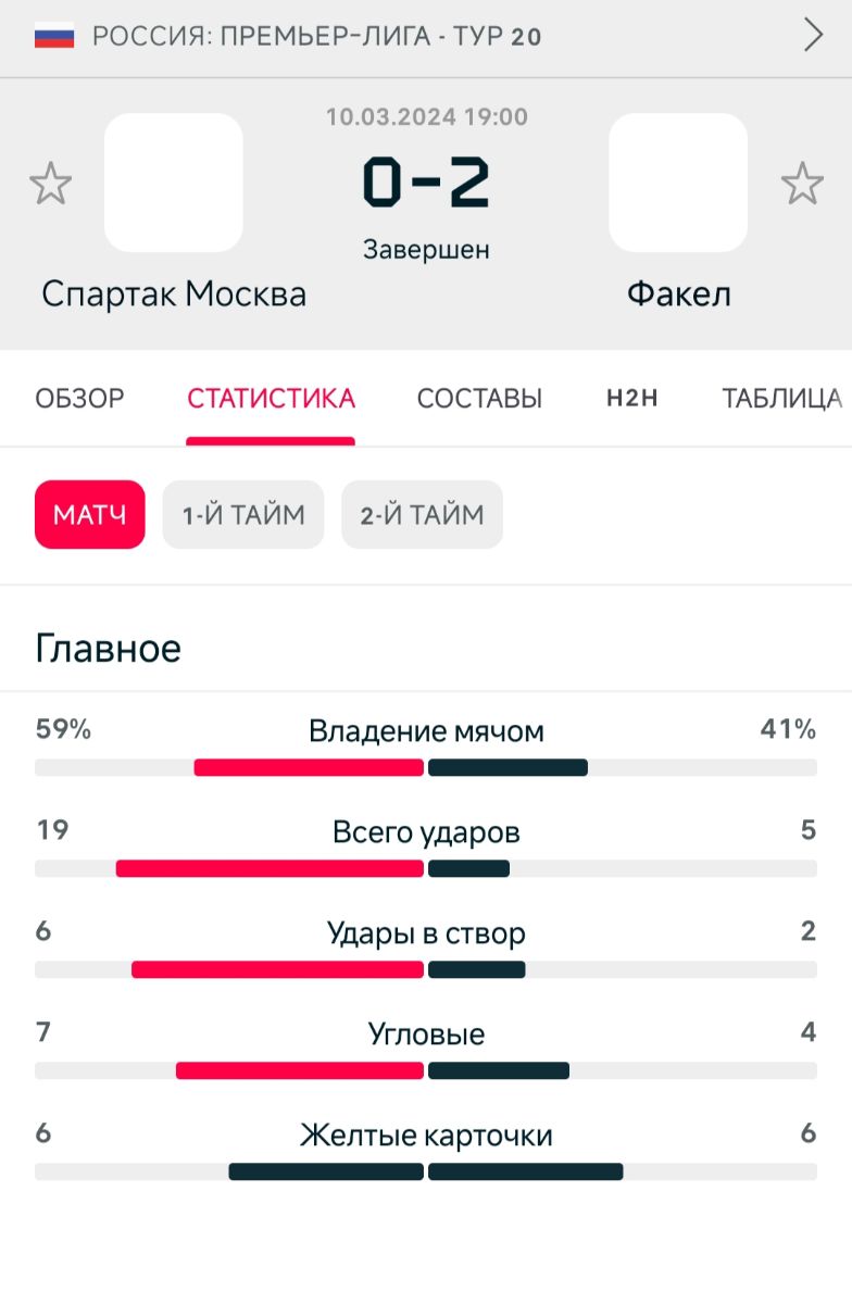 Вот пример: 2 удара в створ - 2 гола, тут же пример количества ударов Спартака в наши ворота. Счёт на табло!