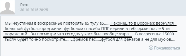 У многих, думаю, свежа в памяти атмосфера 2015-2016 гг. "Ух, мы сейчас...", " Через годик, через два...", "Ну, наконец-то будем вознаграждены за годы мытарств..." Да что говорить, вот "документ эпохи", канун матча с Тулой :)