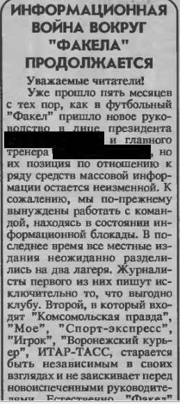 Поразительно. Видно, что клуб работает, гендир дал интервью, из которого ясно, что акцент в этой работе сейчас делается на подготовке выступления Факела-М в ПФЛ и организации работы академии. Но нет, надо же обязательно прикопаться...