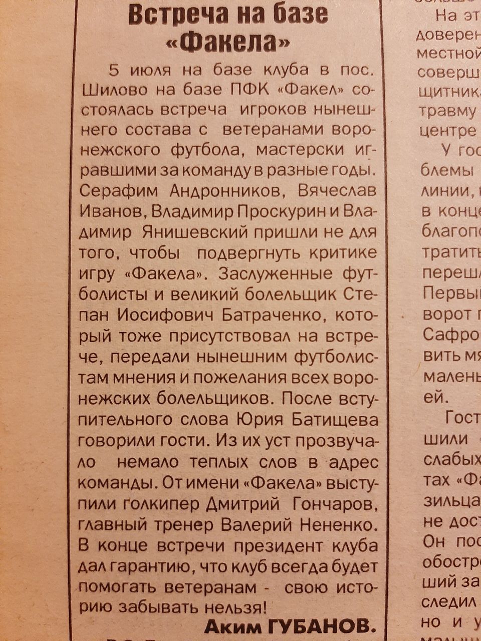 И всё же, при всей противоречивости этой фигуры, столько лет уже где-то рядом с Факелом. А на рубеже веков - так и вовсе "эксперт по Факелу" в областном руководстве.