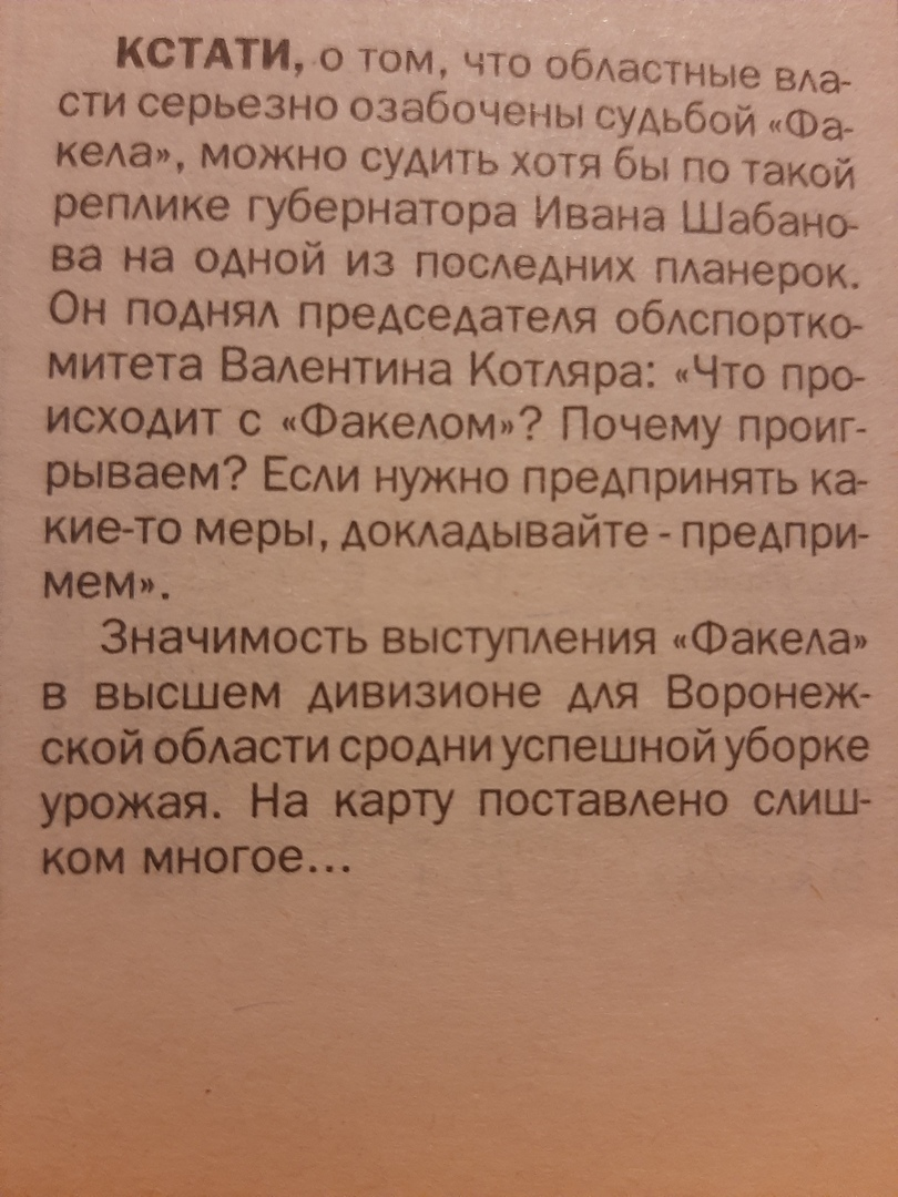 И Воронежу есть, чем обоснованно гордиться в своей футбольной истории. А не кичиться, словно старый аристократ, своими статусом или размерами. Ещё пустословить при этом: "В первенстве СССР такого и представить было нельзя..."