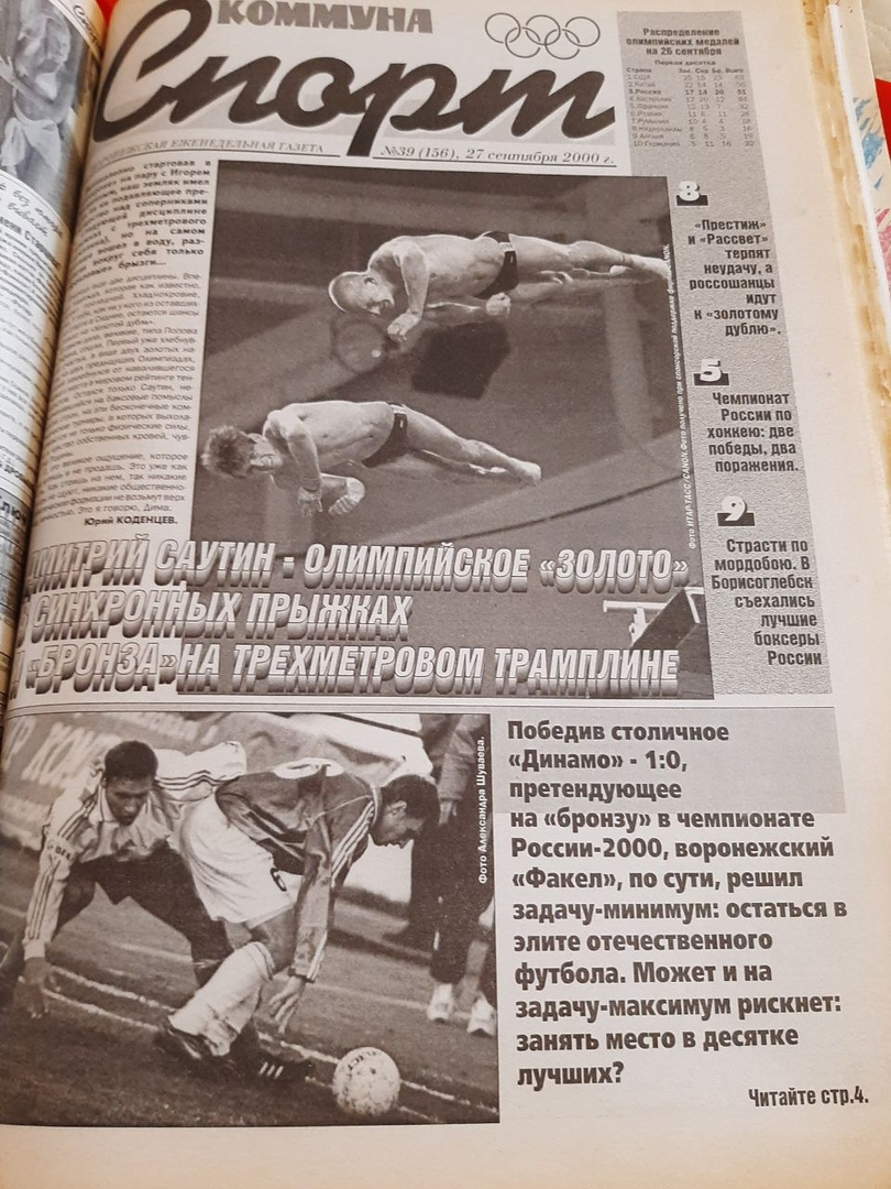 Первая полоса еженедельника "Коммуна-Спорт" ровно 20 лет назад (27.09.2000) - сразу с двумя знаковыми для Воронежа событиями.