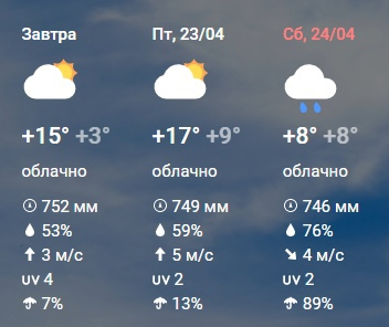 Какая чудесная погодка обещается в ближайшие дни. И как она, уже не в первый раз, резко, словно по заказу, испортится в субботу, ммм)