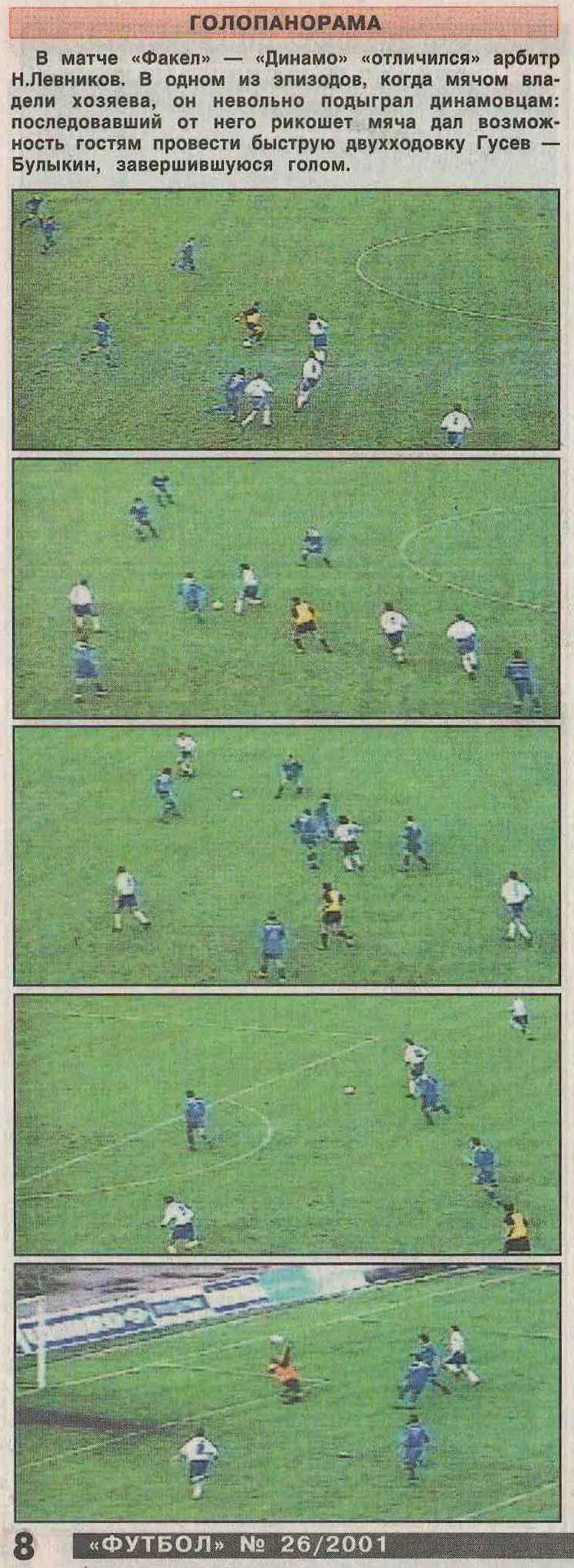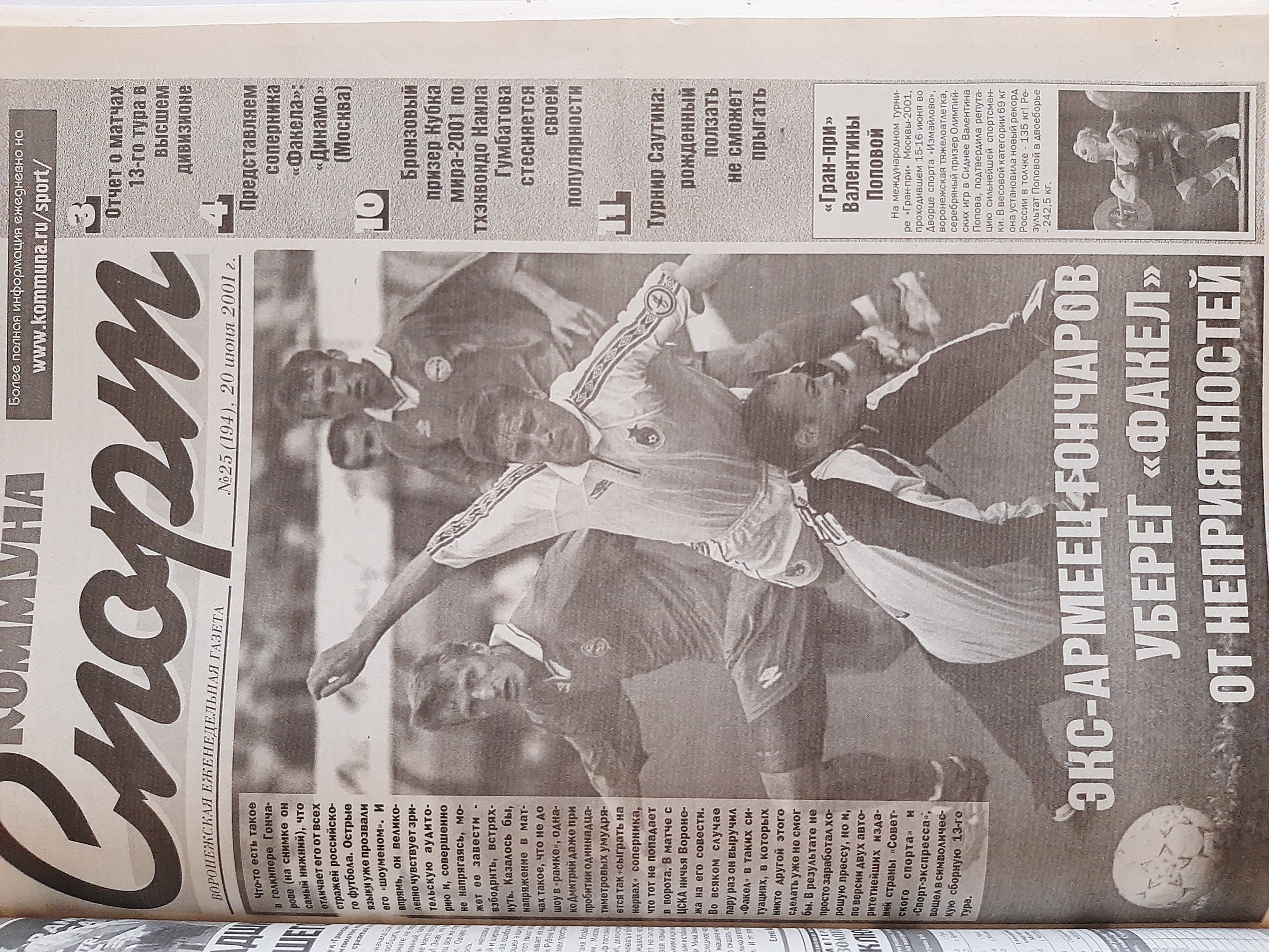 Фрагмент полосы еженедельника "Футбол" (2001, №26)