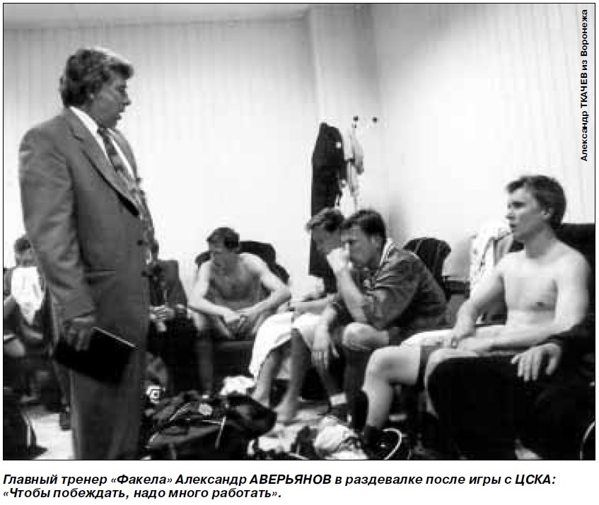 Отвоевав ничью в Раменском и обретя наконец уверенность, Факел рассчитывал на максимум в двух подряд домашних матчах с московскими ЦСКА и Динамо. Боевой настрой подопечных Александра Аверьянова вылился в их ощутимое игровое превосходство в первом тайме и логичный гол, сооружённый нашей белорусской связкой.
