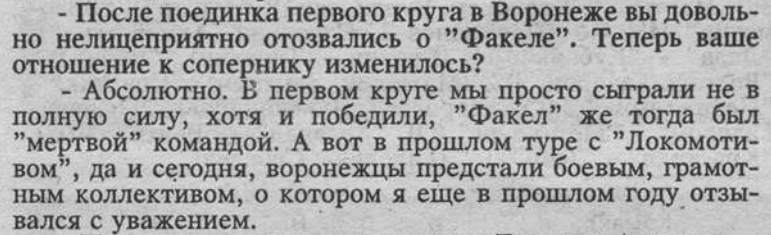 Да, но ещё хуже то, что эти два подряд жутких поражения на последних секундах (и последующие 0:5 от Спартака), по-моему, надломили команду психологически. От этого удара Факел так и не оправился до конца сезона.