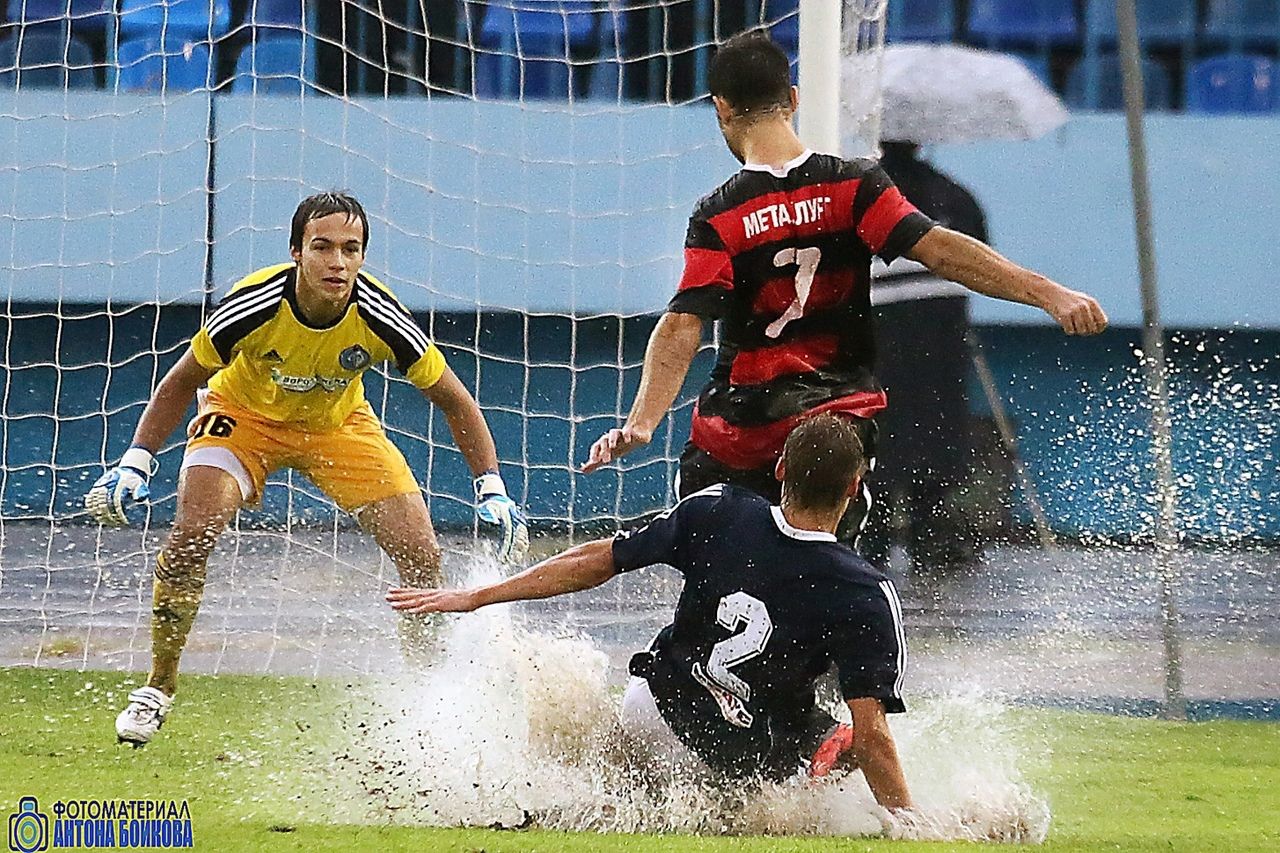 Вот, к примеру, Дмитрий Гончаров не успевает помешать забить Дмитрию Вязьмикину: