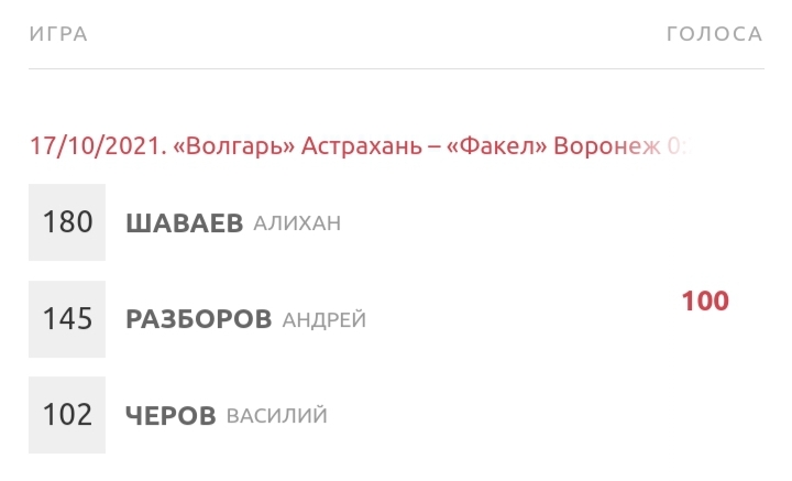Алихан ШАВАЕВ, несправедливо удалённый в матче с Олимпом, где Факел в итоге не сумел забить и проиграл, возвращается в Астрахани и первым же касанием прерывает тянущуюся из Долгопрудного 266-минутную безголевую серию... Да и число голосов красивое)