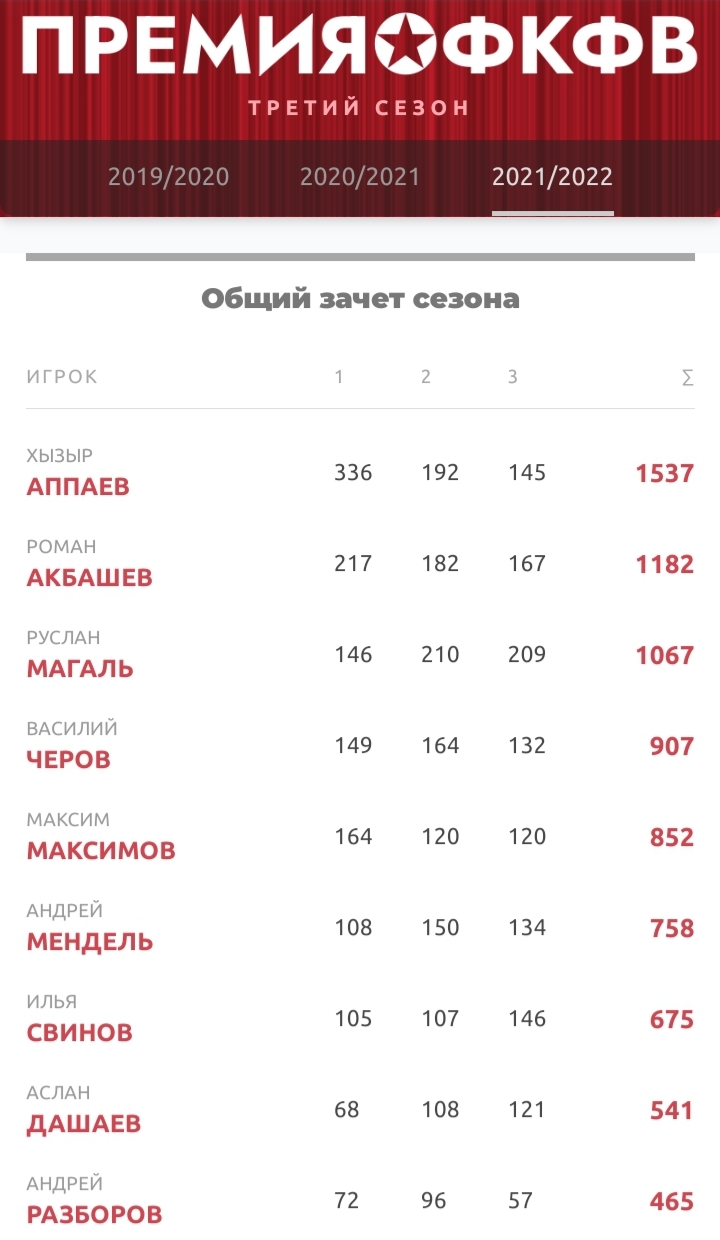 На ФКФВ же звания лучшего удостоился Максимов, что, кстати, позволило ему стать четвёртым игроком, перешагнувшим рубеж в 1000 баллов :)