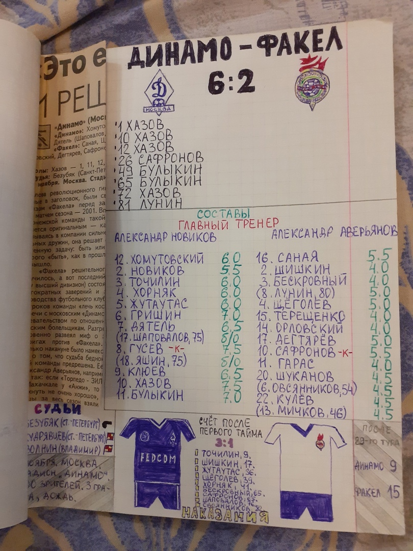 "Сокрушительное поражение от "Динамо" поставило крест на надеждах воронежских болельщиков. После двухлетнего пребывания в элите "Факел" возвращается в первый дивизион. В городе царит траур..." (СЭ, 10.11.2001)