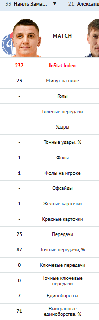 Вроде бы за последние несколько лет система Instat сильно усовершенствовалась и игроки разных амплуа оцениваются по разным методикам. Мне лично интересно сравнить свои впечатления с оценкой спецов, чаще всего они совпадают, но бывает и по другому. В этот раз поставил Замалиева в тройку, но когда увидел оценку был сильно удивлен, стал пересматривать моменты и понял что был не прав.