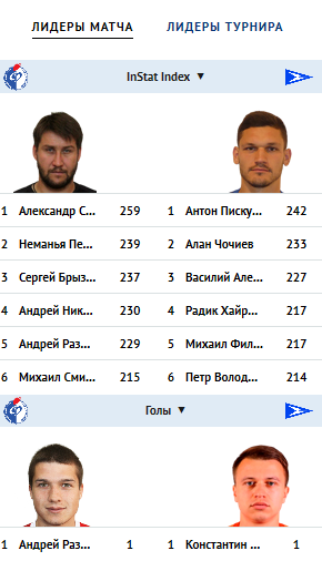 Матч Факел-Чайка единственный, который Instat до сих пор подробно не разобрал. Только 6 лучших обозначили и все, а хотелось бы посмотреть на показатели и оценки Акбашева, Дмитриева и Замалиева.