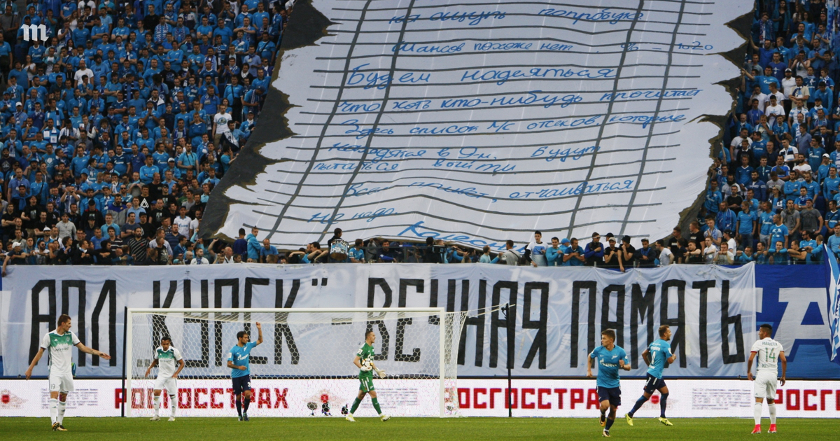 Болельщики «Зенита» вывесили баннер в память о подлодке «Курск». Фотография — Meduza