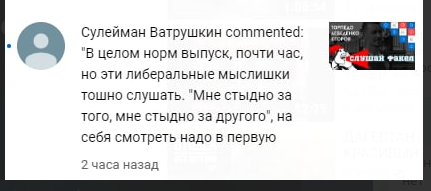 Какой-то Сулейман Ватрушкин написал вот этот камент к последнему выпуску подкаста: