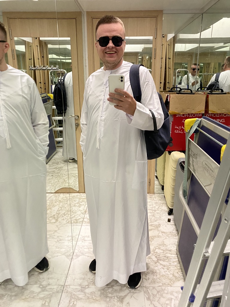 В гигантском аэропорту чет прям прохладно, тут девчонки одеты по погоде, но выходишь на улицу, и там АДД — два часа ночи, +37 и невероятная влажность. Я как мудак поехал не в шортах и сильно страдал.
