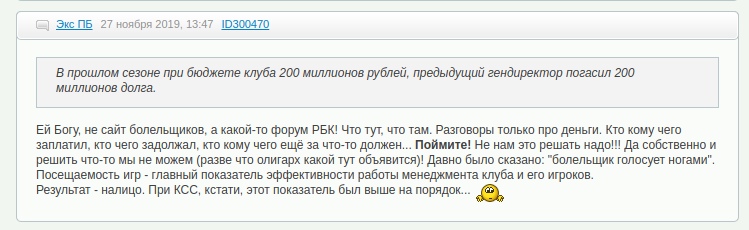 Интересно, что прыгающие на РГА товарищи с обеих гестов не в силах сгенерировать объяснение мотивов гендира в развале клуба. Нет, вот например УССР напирает на отсутствие квалификации, ну это еще ок, но есть же еще позиция, что РГА — это часть большого ПЛАНА. Но если есть ПЛАН, то зачем было привлекать РГА? Вполне успешно зарыли бы Факел силами своих же партийных прокураторов.