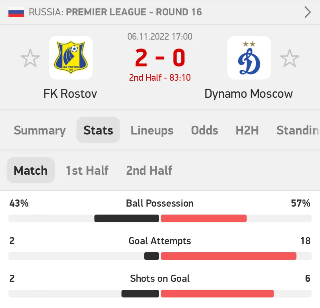 Символичный матч Ростов - Динамо. Глупые мусора 16 ударов, 7 в створ. Чёткие ростовские поцики 1 удар, он же в створ и 1-0. Всё как в жизни, мусора пытаются душить, а в итоге сосут