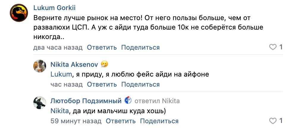 А вот комментарий у нас в паблосе ВК:
