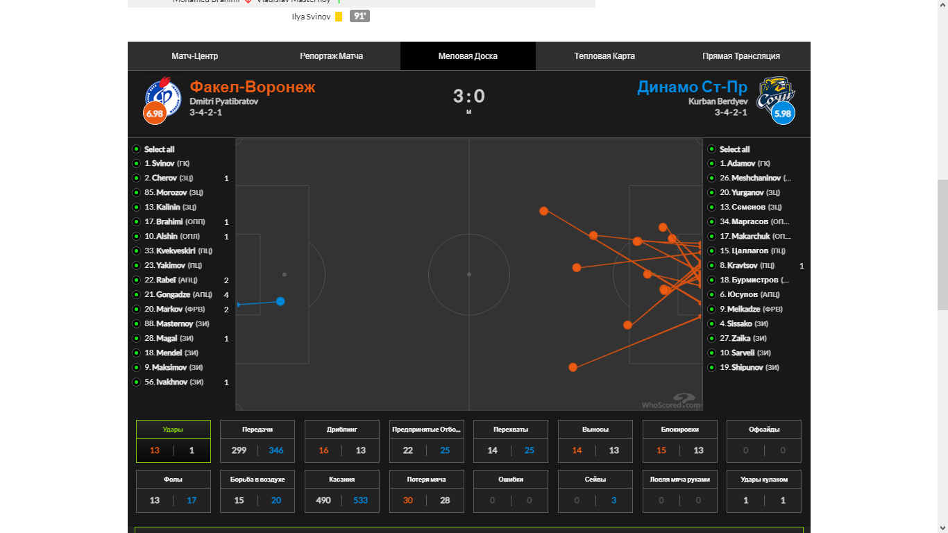 Пересмотрел матч-сумбурная игра получилась, с трибун так не казалось. Из негативного-из игры в игру, как только отдают пас на Свинова следует отбой верхом и мы теряем мяч. Епрст, отдай мяч свободному защитнику ! Нет, машет руками, типа идите вперед, выносит и, сука, либо в аут, либо сопернику…