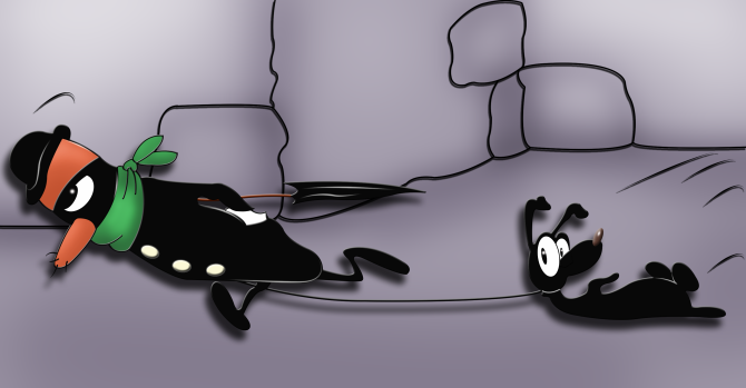 вот он. Вопрос: что является собакой, которую он тащит за собой, и она на лопатках? Надо думать