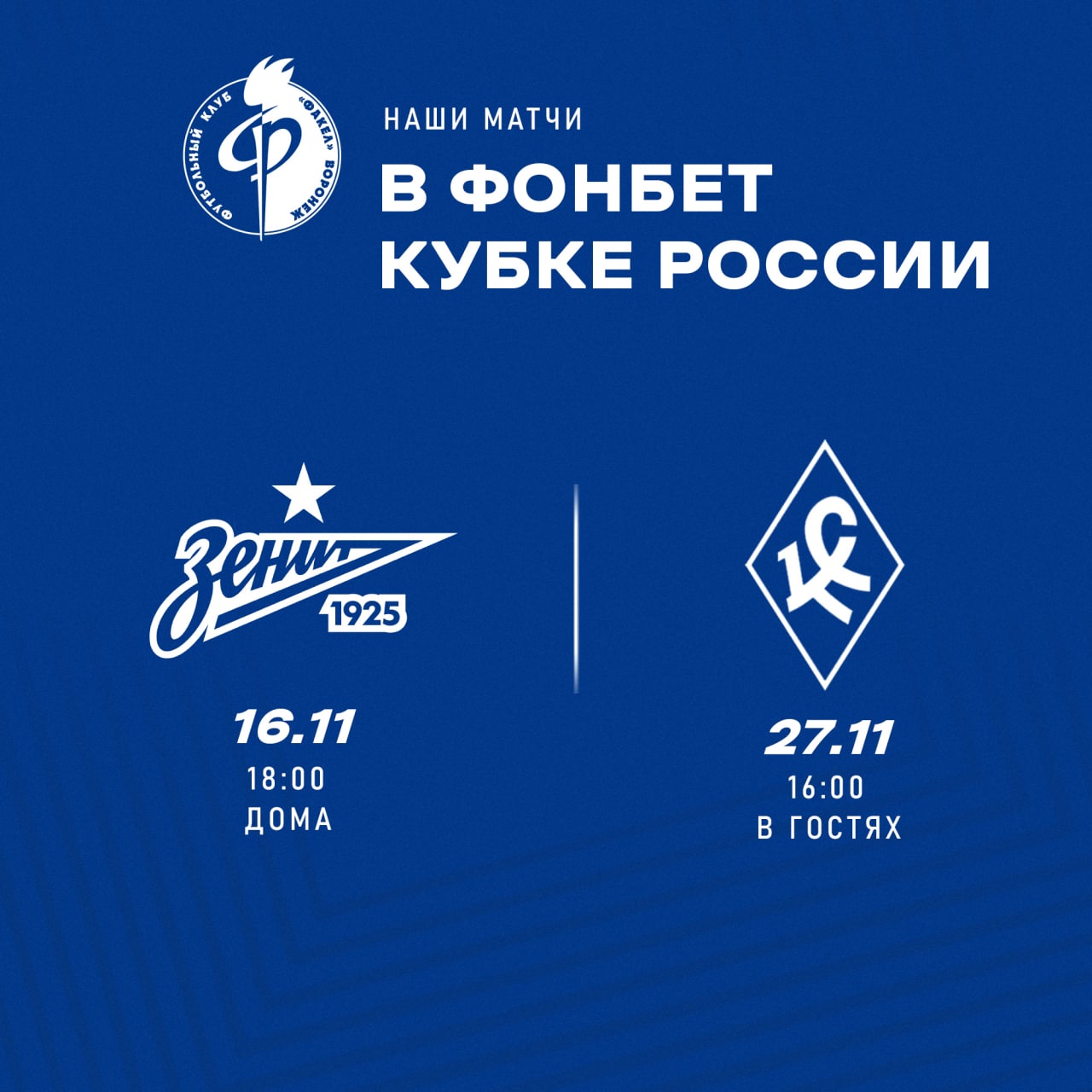 «ЗЕНИТ» ПЫТАЕТСЯ ДОГОВОРИТЬСЯ О ПЕРЕНОСЕ ИГРЫ С «ФАКЕЛОМ» В КУБКЕ — на 16 НОЯБРЯ. И В ЭТОМ МАТЧЕ МОГУТ НЕ СЫГРАТЬ СБОРНИКИ По информации «РБ Спорт», «Зенит» предлагает «Факелу» провести матч 5 тура группового турнира Кубка России 16 ноября. Первоначально игра был запланирована на 8-10 ноября (данные официального сайт РФС), однако общее собрание РПЛ проголосовало за то, чтобы матчи 5-6 туров Кубка перенести на конец ноября (чтобы дать сборной подготовиться к товарищеским матчам и, в то же время, удлинить сезон для команд РПЛ) — по данным «РБ Спорт», за это решение проголосовали 14 из 16 клубов, а ориентировочными датами, в которые планируется сыграть, стали 23 и 27 ноября (при этом решение пока не утверждено бюро исполкома РФС). Но для «Зенита» первая дата — 23.11 — неудобна, потому что днем ранее питерцы, скорее всего, проведут матч с «Црвеной Звездой» в Петербурге. В итоге клуб предлагает «Факелу» (а игра состоится в Воронеже) дату 16 ноября. При этом в матче, вероятно, не смогут принять участие футболисты сборной России, у которой 17 ноября намечен матч в Душанбе. В итоговый состав сборной для подготовки к прошлому матчу — с Киргизией — вошли зенитовцы Кержаков, Караваев, Кузяев, Мостовой.