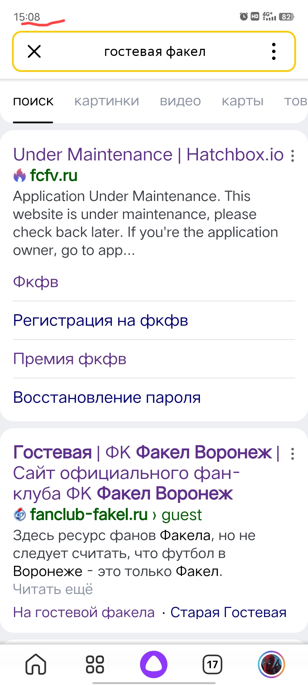 Вероятно, Яндексовские боты пришли на сайт ровно в те 15 минут, что у сайта была такая плашка.) Но ниче, еще несколько раз зайдут, убедятся, что все ок, и заменят этот сниппет на актуальный.