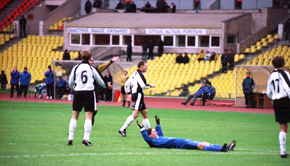 Трудно сказать, по какой такой причине «Факел» вышел на поле лужниковского стадиона этаким робким новичком, которого пугало буквально всё: и огромный добротный стадион, и именитый соперник, и даже, похоже, горстка московских болельщиков. (А их на восьмидесятитысячном стадионе собралось аж 600 человек). По крайней мере на первых минутах у воронежских футболистов всё валилось из рук. То есть из ног. Уже на пятой минуте наши ребята допустили грубую ошибку в обороне. Несогласованные действия в районе своей штрафной площади привели к тому, что форвард хозяев Дмитрий Вязьмикин обокрал защитников и перекинул мяч через выбежавшего ему навстречу Гончарова. Даже пропустив гол, воронежцы продолжали находиться в прострации. Ничего похожего на осмысленные действия в атаке не было и в помине. Игроки «Факела» словно продолжали недоумевать – как же это могло произойти. Москвичи же продолжали измываться над приезжими футболистами. Спустя десять минут Зырянов играючи ушёл на левом фланге от Шишкина и опасно прострелил вдоль ворот. Ширко оказался один на дальней штанге и мощнейшим ударом потряс правую стойку ворот, которая аж зазвенела от негодования.