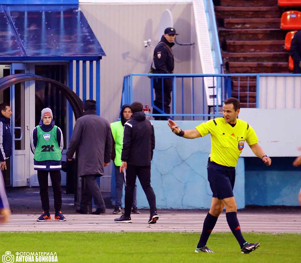 На 39-й минуте главный судья матча москвич Евгений Турбин удалил со скамейки запасных на трибуну главного тренера «Волги» Андрея Талалаева за вмешательство в действия арбитра, но хозяевам это не помогло – первый тайм «Факел» не создал у ворот гостей ни одного момента.