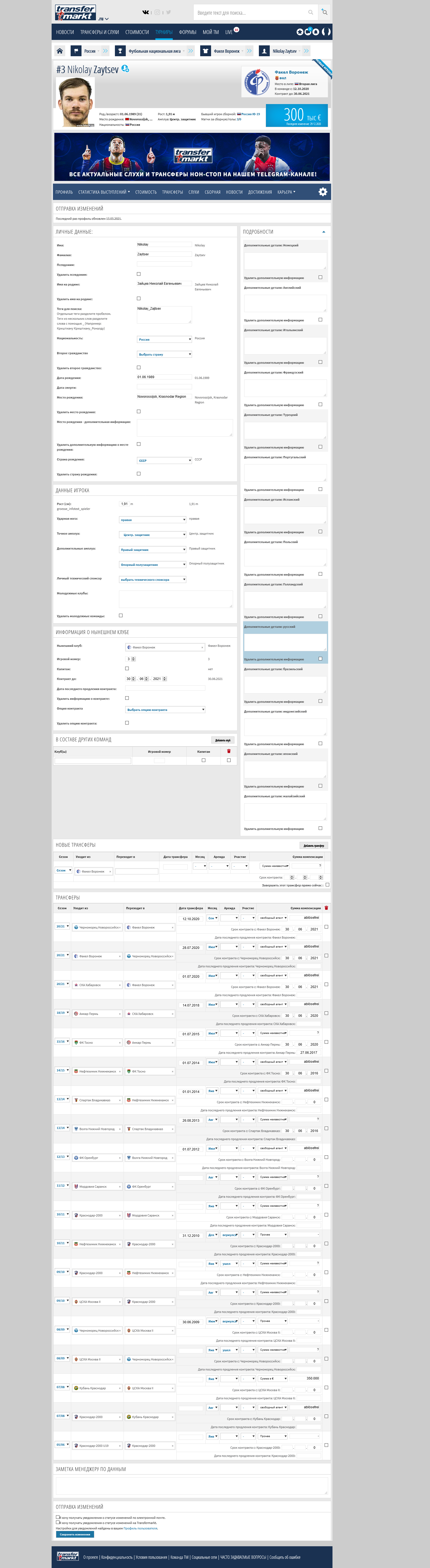 Изменять информацию на ТМ может любой желающий после регистрации. Перед публикацией её проверяет модератор. В отсутствие информации о контракте - берут дату окончания чемпионата.