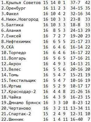В турнирной таблице 2 круга опустились на 3 место. Придаю этому значение, так как она наглядно показывает наши перспективы на следующий сезон, будем в итоге в четверке, значит способны.