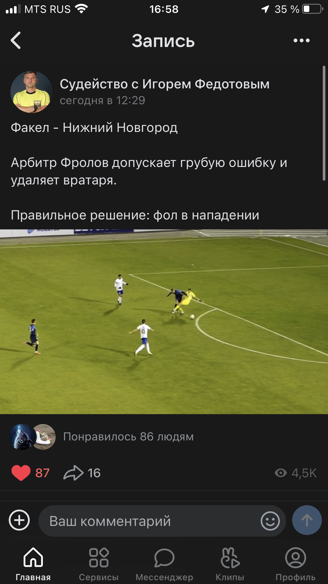 Пост на ФКФВ