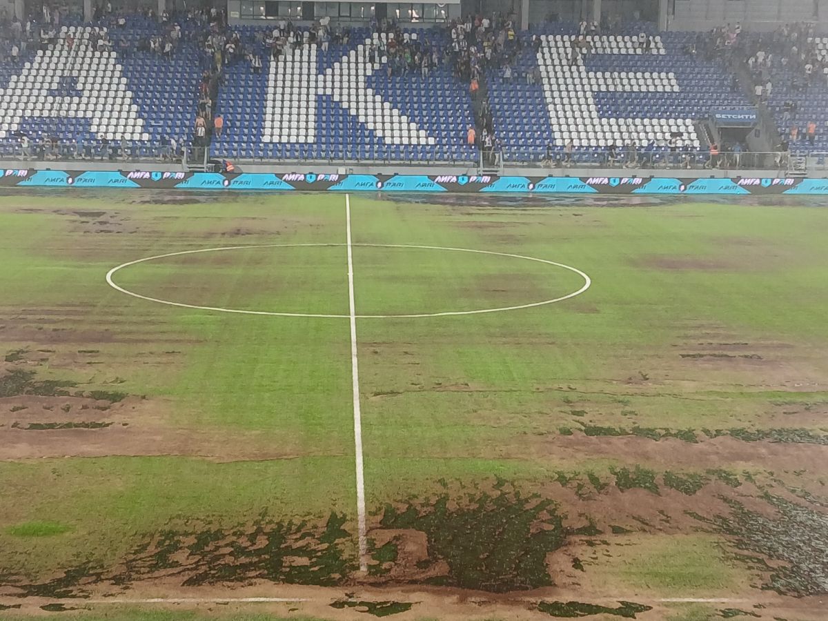 Поле после матча. Повезло, что большую часть игры ливня не было.