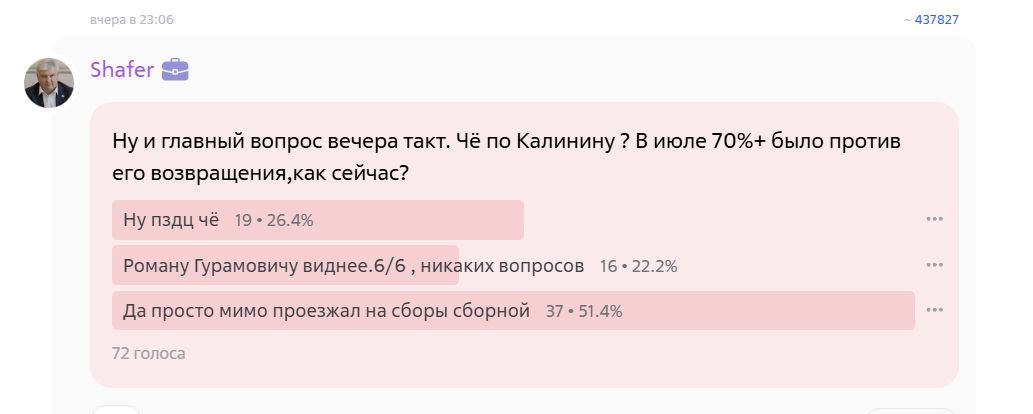Итоги: большинство факелонов отрицают связь Калинина и Факела 24.08.2025 года.