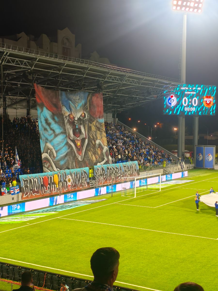 Ну начну с того, что этот матч для меня лично стал по сути как выездной. Как я узнал, что катка Факела с Арсеналом будет в понедельник, неделю бухтел, наверное. Ибо знал, что будет тяжеловато мне попасть на матч. Так и произошло. Приехал на работу, как руководство сразу ошарашило, что отъебнуло оборудование в самом дальнем филиале. Съездил туда, вернулся на работу, поехал в Воронеж, там до Маршаканы. Жёстко, в общем. Прям выхожу на остановке, вижу, что стоит сэр в футболке ФКФВ. Думаю, надо познакомиться. Оказалось, что это был сэр Аlejandro. Был очень рад знакомству. Всё-таки майки ФКФВ имба в этом плане, всегда можно таким образом определить человека с геста, приятно. По быстрому взял бутер, ибо ничего в этот день ничего не ел и погнал на стадио. Сажусь на с5, вижу, Андрюха Оле Оле на матче, уже как-то само настроение поднялось. Потом Юг перед началом матча замутил крутейший перф.