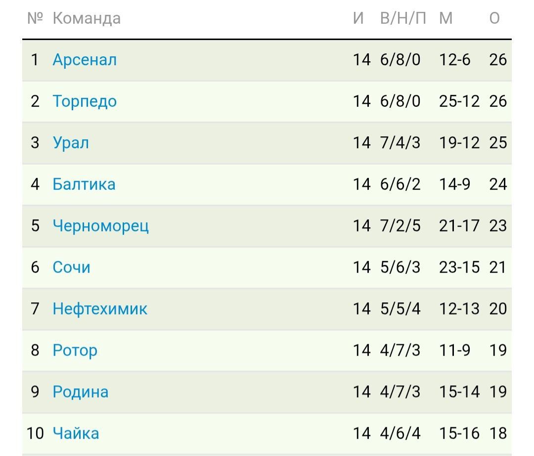 Интересно, была ли вообще в истории футбола на 1м месте команда, за 14 туров забившая 13 голов?