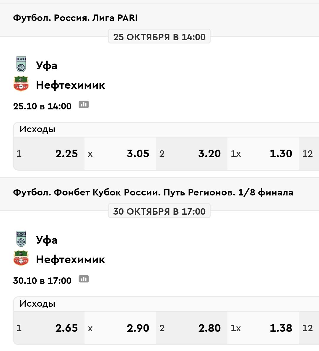 Интересное совпадение. Нефтехимик гостит в Уфе сначала в чемпионате, а через 5 дней там же играет в Кубке.